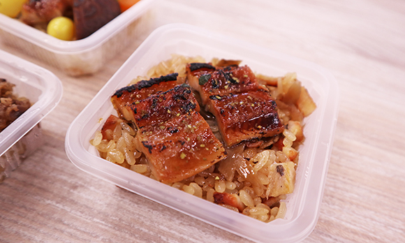 「(穴子おこわ試食)穴子は山椒の効いた深みのある味わいで、食感も柔らかく、おいしいです。ご飯にも細かく刻んだ穴子が混ぜ込まれていて、見た目以上にたっぷり穴子が楽しめます。ゴボウなど野菜のシャキシャキ食感も残っているので、冷凍なのにお店で食べるような満足感です」